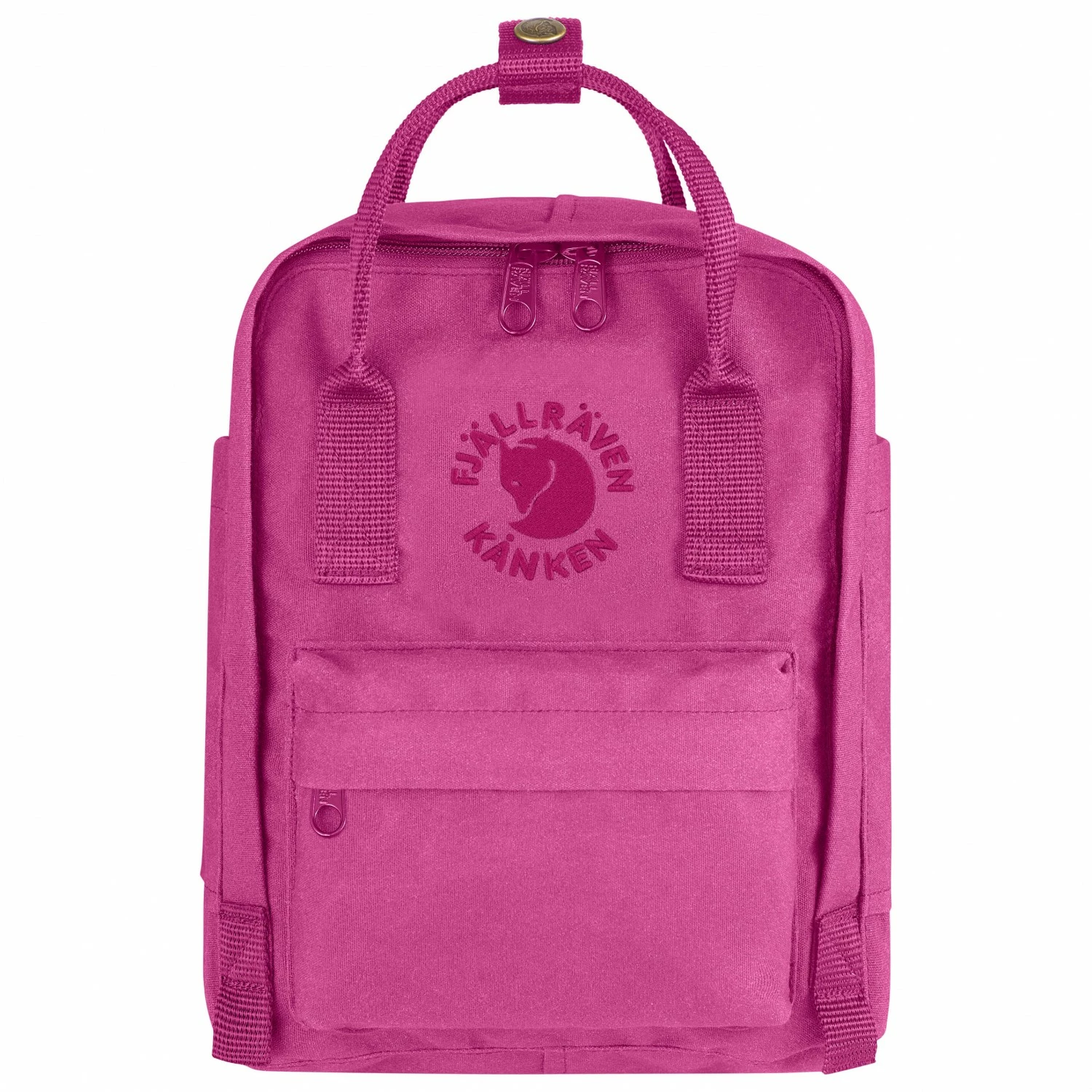 As the name already reveals: the Fjällräven Re-Kanken Mini is a smaller version of the renowned backpack and has been made of recycled polyester. Nine PET-bottles turn into a new backpack. Additionally, the Re-Kanken Mini has been dyed extremely environmentally-friendly while even the seams and straps are made of recycled polyester fabric. Of course, a water repellent impregnation is environmentally-friendly too.It features two hand pockets on the outside, a patch front pocket and a back pocket with removable seat cushion on the inside.Furthermore, the carry straps enable you to carry the backpack as a shoulder bag, on the back (also suitable for taller people) and obviously, thanks to the attachable handles (with buttons) the Re-Kanken Mini can also be carried in the hand.As all parts including the embroidered logo are of the same color the bag features a subtle design. Moreover, the durability of the Re-Kanken Mini can be expected to be as long as its renowned elder brother. In addition, the Fjällräven Re-Kanken Mini can be recycled! Underlining Fjällräven’s position on sustainability.