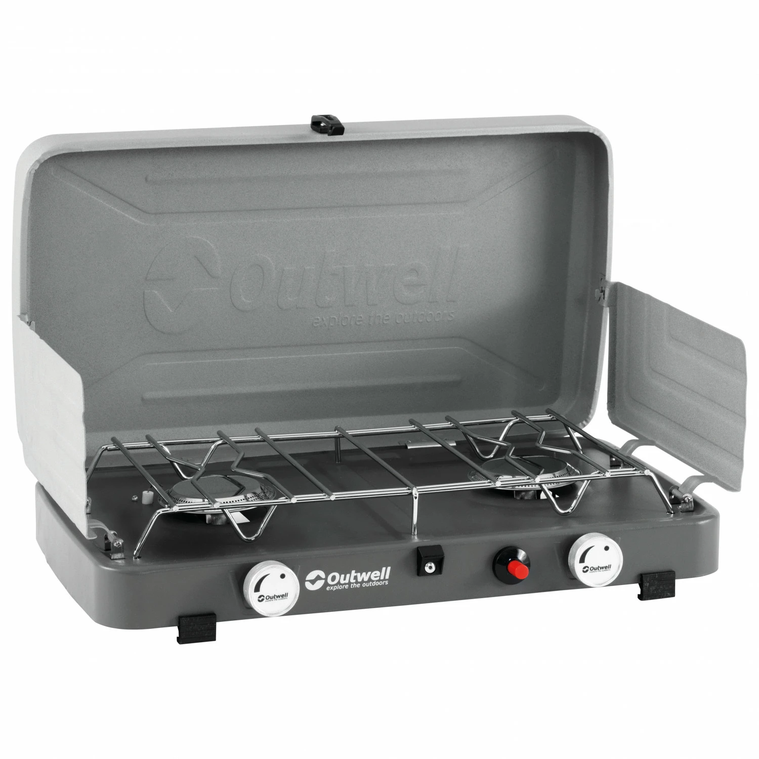 A stove for your mobile camping kitchen: the Olida Stove from Outwell! The compact gas stove is made of high-quality stainless steel and has two powerful burners, each with an output of 3,000 watts, which bring a litre of water to a boil in just under seven minutes. The removable stainless steel pot support makes it easier for you to clean. Plus, it features a foldable windscreen that offers protection against the elements.
