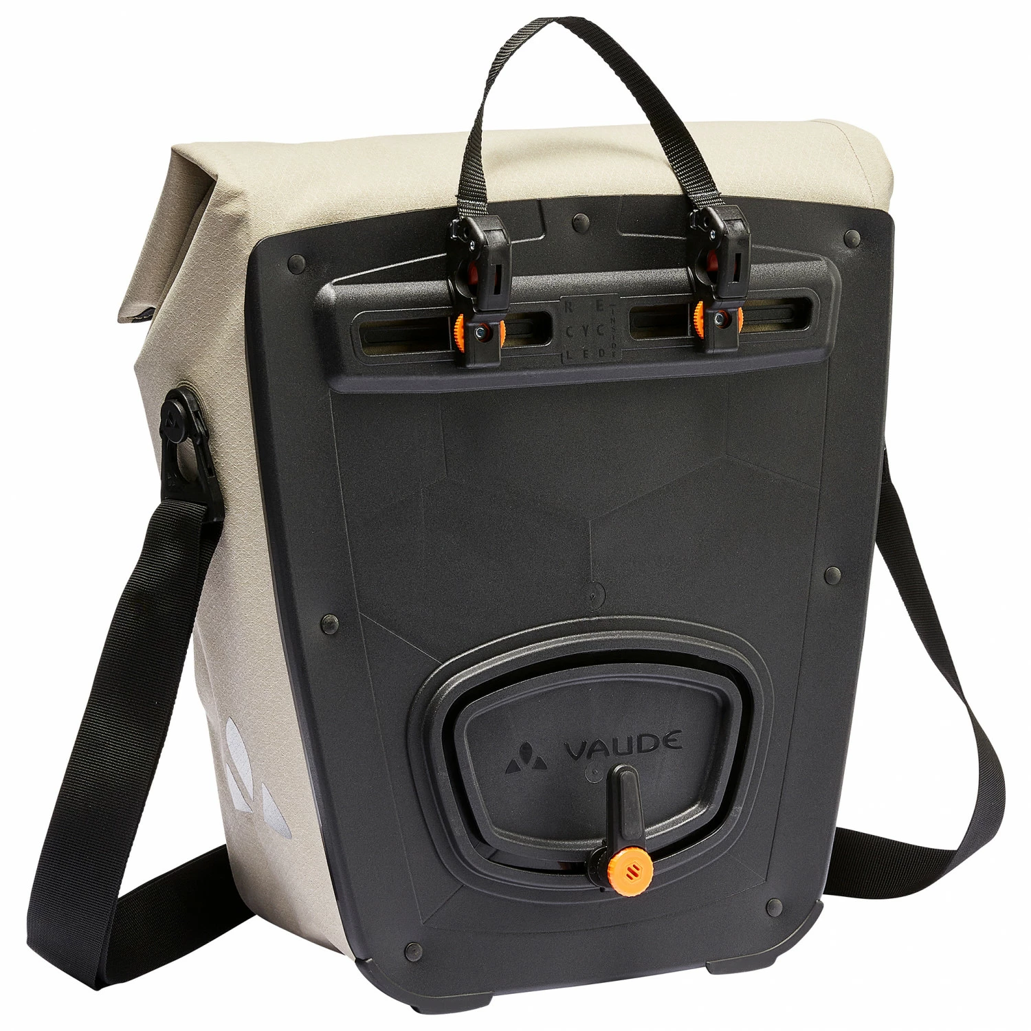 The ReCycle Pro Single is equipped with a hard-shell rear, giving the bag a high degree of stability. In addition, it can easily be detached from the luggage rack with the help of the integrated QMR 2.0 quick-release hooks, but can also be secured directly to the bike with a lock (not included). The detachable, adjustable shoulder straps allow you to take the bag with you wherever you go. The strap’s rotating mechanism prevents it from being tipped over.
